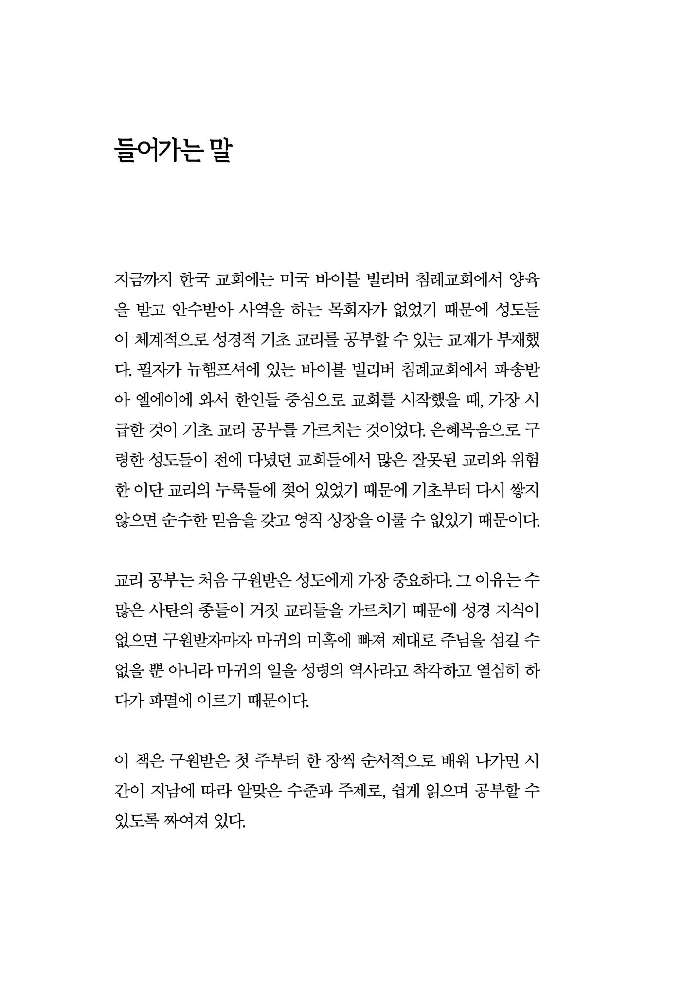 평생을 교회에 다녔지만, 교리를 제대로 가르쳐주는 곳은 없었어요.. 이 책을 읽고 체계적으로, 구체적으로 성경 말씀과 하나님에 대해서 알게 되어서 너무 좋아요. 지루하고 어렵기만 했던 성경이 이제는 꿀송이 같이 달고 귀해요. 이젠 말씀 읽고 듣는 것마다 나에게 하시는 말씀으로 다가옵니다. ^^