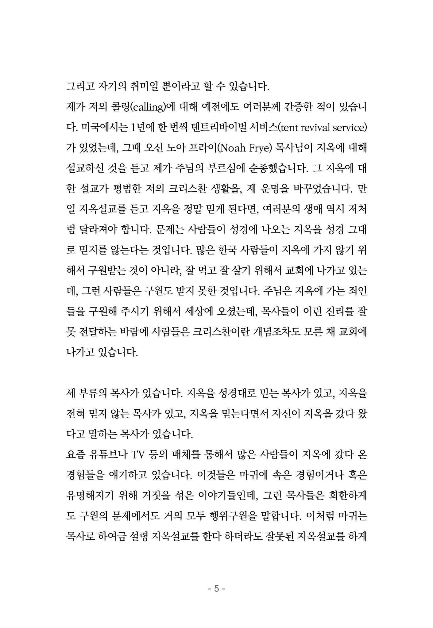 지옥설교를 안하면 거짓목사이다